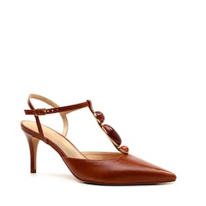 clássico com um toque contemporâneo, este scarpin slingback em couro marrom é a escolha ideal para ocasiões que pedem sofisticação com personalidade. o design de bico fino alonga a silhueta e confere elegância instantânea, enquanto a tira central com pedrarias em tons terrosos e acabamento dourado adiciona um toque de glamour na medida certa.