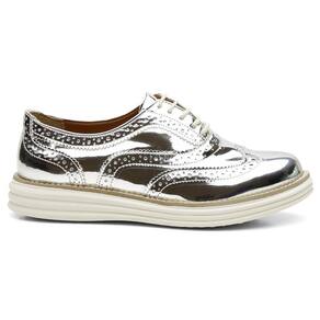 Sapato Derby Feminino Brogue Metalizado Conforto Elegante - 35 - Cinza