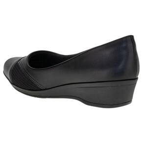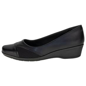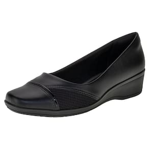 O Sapato Feminino Anabela ComfortFlex é confeccionado em Napa de alta qualidade com acabamento em costura, detalhe em textura e material metalizado no cabedal, forro interno em têxtil, palmilha em PU e solado em borracha antiderrapante com salto de quatro centímetros.