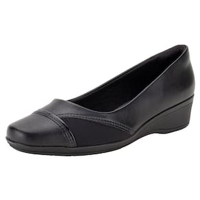 O Sapato Feminino Anabela ComfortFlex é confeccionado em Napa de alta qualidade com acabamento em costura, detalhe em textura e material metalizado no cabedal, forro interno em têxtil, palmilha em PU e solado em borracha antiderrapante com salto de quatro centímetros.