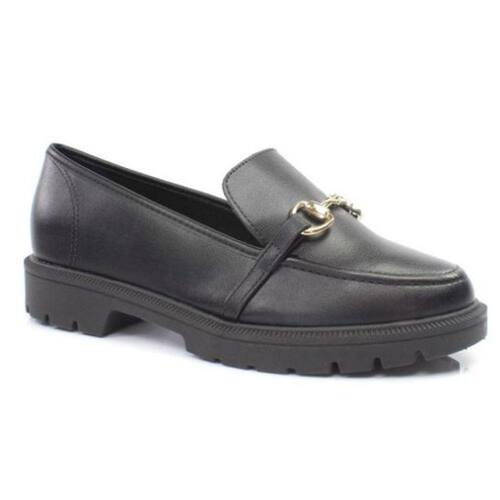 Sapato Feminino Beira Rio Mocassim Tratorado Recortes Fivela - 37 - Preto