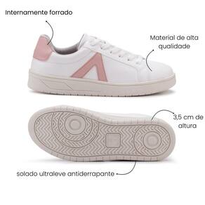 Sapato Feminino Branco Tenis Casual Moda Blogueira - 38 - Rosa
