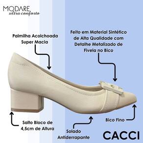 Seu salto bloco de 4,5cm proporciona altura na medida certa, com muito mais estabilidade ao caminhar. A palmilha super macia e acolchoada abraça os pés com suavidade, oferecendo conforto prolongado durante todo o dia. O bico fino valoriza o visual e alonga a silhueta, sem causar incômodo.