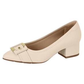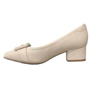 Sapato Feminino Conforto Salto Baixo Charme Bico Fino Modare - Bege Claro - 36