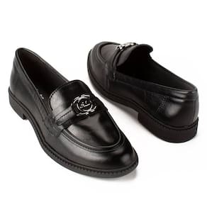 O Sapato Dakota Loafer Preto é aquele clássico indispensável no closet de toda mulher moderna. Com um design minimalista e sofisticado, ele traz o toque perfeito de elegância para compor desde os looks de trabalho até as produções mais despojadas do dia a dia. O detalhe em metal dourado no cabedal adiciona charme e personalidade, elevando o visual com discrição e estilo.