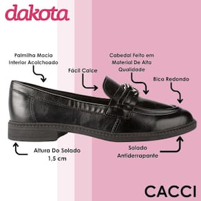 Versátil, atemporal e cheio de estilo, o loafer Dakota é a escolha certa para quem quer praticidade com um toque refinado. Combine com jeans para um visual casual chic, ou aposte em saias e vestidos para um look mais elegante. Com ele, você está sempre pronta para qualquer ocasião.