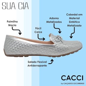Transforme seu guarda-roupa com o Sapato Feminino Mocassim Slip On Laço Metalizado Sua Cia e sinta a diferença que um calçado elegante e confortável pode fazer. Faça seu pedido agora e eleve seu estilo com sofisticação!