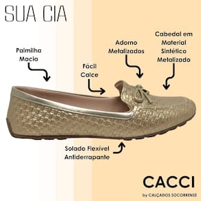 Fácil de calçar e combinar, este mocassim é perfeito para o dia a dia agitado. Seja para o escritório, um encontro casual ou um passeio no fim de semana, o Mocassim Slip On Laço Metalizado Sua Cia é a escolha certa para quem busca estilo sem abrir mão do conforto.