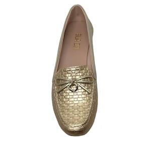 O laço delicado, o adorno dourado e o acabamento metalizado conferem um charme extra e um toque de luxo ao design. A combinação de elegância e praticidade faz deste mocassim uma peça-chave no seu guarda-roupa.
