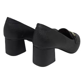 Salto bloco de 5,5 cm: Altura ideal para valorizar a postura, oferecendo estabilidade e elegante sem abrir a mão do conforto.