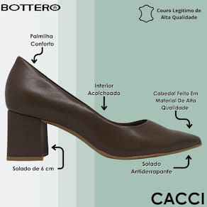 O clássico scarpin ganha uma versão repaginada com salto grosso, ideal para quem busca unir elegância e conforto em um único calçado. Este modelo da Bottero é produzido em couro macio de alta qualidade, garantindo durabilidade e um visual sofisticado que se adapta com facilidade a diversas ocasiões. O salto bloco de aproximadamente 6 cm oferece estabilidade e equilíbrio, perfeito para longos períodos de uso, seja no dia a dia ou em eventos especiais. Internamente, o forro têxtil proporciona toque suave à pele, enquanto a palmilha com espuma molda-se ao pé, resultando em uma sensação de conforto a cada passo. O solado emborrachado traz segurança adicional, com boa aderência em diferentes tipos de superfícies. Versátil, esse scarpin é um curinga no guarda-roupa feminino: combina perfeitamente com peças de alfaiataria para o ambiente profissional, vestidos midi em produções mais delicadas ou até mesmo com jeans e camisas para um visual moderno e descomplicado. Um calçado atemporal que alia praticidade, elegância e funcionalidade na medida certa.