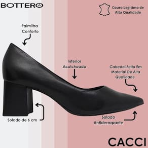 O clássico scarpin ganha uma versão repaginada com salto grosso, ideal para quem busca unir elegância e conforto em um único calçado. Este modelo da Bottero é produzido em couro macio de alta qualidade, garantindo durabilidade e um visual sofisticado que se adapta com facilidade a diversas ocasiões. O salto bloco de aproximadamente 6 cm oferece estabilidade e equilíbrio, perfeito para longos períodos de uso, seja no dia a dia ou em eventos especiais. Internamente, o forro têxtil proporciona toque suave à pele, enquanto a palmilha com espuma molda-se ao pé, resultando em uma sensação de conforto a cada passo. O solado emborrachado traz segurança adicional, com boa aderência em diferentes tipos de superfícies. Versátil, esse scarpin é um curinga no guarda-roupa feminino: combina perfeitamente com peças de alfaiataria para o ambiente profissional, vestidos midi em produções mais delicadas ou até mesmo com jeans e camisas para um visual moderno e descomplicado. Um calçado atemporal que alia praticidade, elegância e funcionalidade na medida certa.