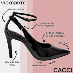 O scarpin Via Marte é aquele tipo de peça que vai além do básico — ele é feito para marcar presença. O design com bico fino não só afina visualmente os pés, como também transmite elegância e poder. Já o salto alto e fino, com seus 10 cm de altura, oferece uma postura imponente, valorizando as pernas e garantindo uma caminhada confiante e cheia de atitude. Apesar da altura, o salto é leve e bem estruturado, proporcionando conforto ao longo do uso.