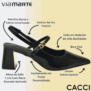 O acabamento em verniz preto traz aquele brilho elegante que transforma qualquer produção, seja ela clássica ou ousada. Esse slingback é ideal para looks de alfaiataria com calça cropped ou pantalona de cintura alta, dando um toque fashionista ao visual profissional. Para eventos ou saídas noturnas, ele fica incrível com vestidos midi, saias envelope ou até mesmo peças com brilho — criando um contraste sofisticado com o verniz. É o tipo de sapato que une charme e versatilidade, perfeito para quem sabe que o estilo começa pelos pés.