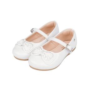 Delicado e cheio de brilho, o sapato Angel branco com acabamento em verniz é perfeito para compor looks clássicos e encantadores. Com bico arredondado, o modelo ganha um charme especial com os duplos laços frontais decorados com strass em hotfix, que iluminam o visual com suavidade.