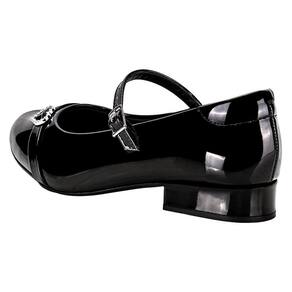 O Sapato Infantil Feminino Molekinha é confeccionado em material Premium envernizado com acabamento em costura, fechamento por fivela de ajuste, forro interno em têxtil, palmilha em PU e solado em borracha antiderrapante com salto de dois centímetros e meio.