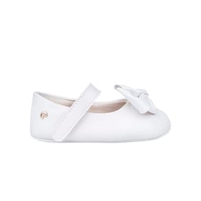 Sapato de bebê feminino em sintético branco com laço adornado! Sapato com forro em tecido que auxilia na absorção do suor e espuma para acolher e cuidar dos pezinhos sem interferir no desenvolvimento natural. Sapato infantil flexível com calce fácil, facilitando o dia a dia da mamãe!