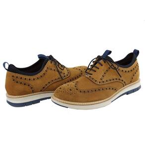 Sapato Masculino Oxford Couro Camurça Fechamento Cadarço Detalhe Perfurações Solado TR Confortavel - 41 - Amarelo
