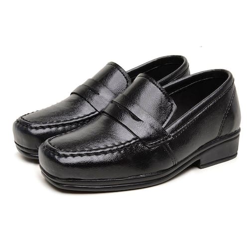 Sapato Mocassim Social Infantil Menino Calce Facil Escolar Confortavel Pajem Bico Quadrado Moderno - 28 - Preto