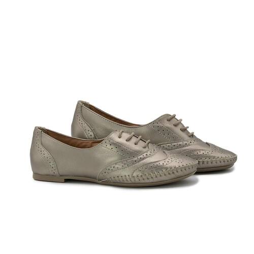 Sapato Oxford Couro Feminino Brogue Metalizado Leve Conforto - 35 - Cinza