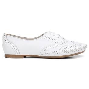 Sapato Oxford Couro Feminino Cadarço Brogue Conforto Estilo - 36 - Branco