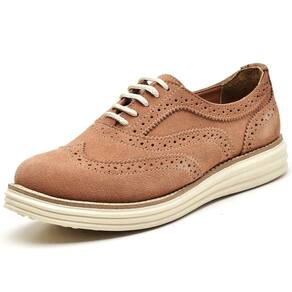 Sapato Oxford Feminino Camurça Com Cadarço Casual Salto Baixo Palmilha EVA - 35 - Salmão