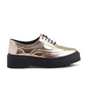 Sapato Oxford Feminino Tratorado Metalizado Clássico - 36 - Amarelo Ouro