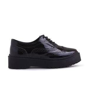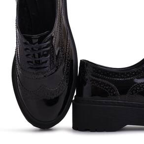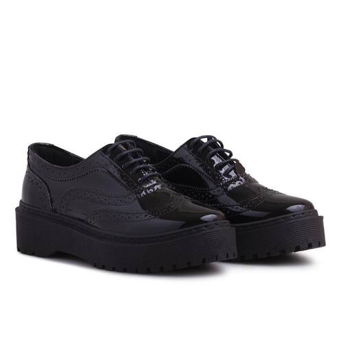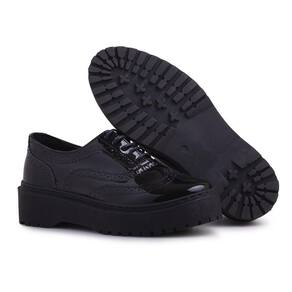 Sapato Oxford Feminino Tratorado Metalizado Clássico - 37 - Preto