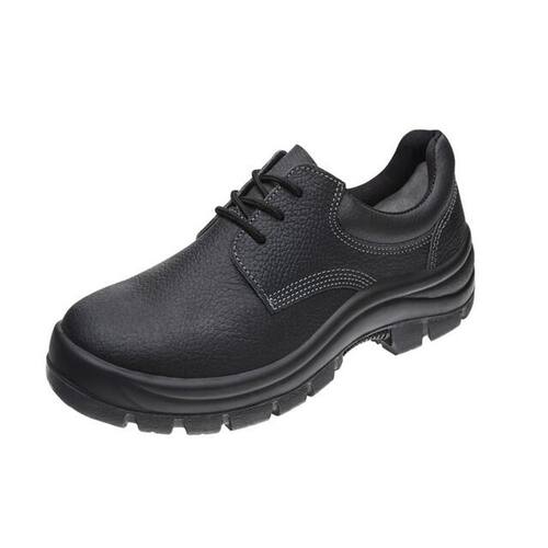 Sapato de couro relax na cor preta, ideal para profissionais que atuam na áreas de produção, serviços gerais e prestadoras de serviços. Este Safety Flex tem biqueira de polipropileno, colarinho soft acolchoado, fechamento em cadarço e palmilha de montagem em EVA. O solado em PU bidensidade tem sistema de absorção de impacto, sendo injetado diretamente no cabedal, além de contar também com palmilha higiênica com proteção antibacteriana. O sapato conta também com a certificação IBTeC de conforto.