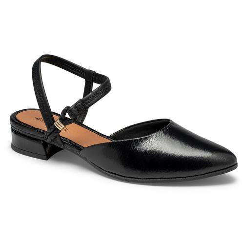 Desenvolvido com materiais de alta qualidade, este modelo possui um salto baixo de 3 cm que garante estabilidade e conforto durante todo o dia. O bico fino alonga a silhueta e a tira maleável sem fechamentos proporciona um calce fácil e rápido, adaptando-se perfeitamente aos seus pés. Além disso, o detalhe da tira tramada com peça metalizada adiciona um toque de sofisticação e modernidade ao calçado.