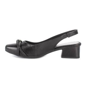 A tira sem fechamentos que envolve o calcanhar de forma suave, garante um calce fácil e rápido. A textura discreta presente em toda a superfície do sapato adiciona um toque de sofisticação, enquanto a tira frontal com detalhes em brilho confere um charme especial e um toque de luminosidade ao visual. O salto bloco de 4 cm oferece estabilidade e conforto ao caminhar, além de alongar a silhueta e garantir um porte elegante.