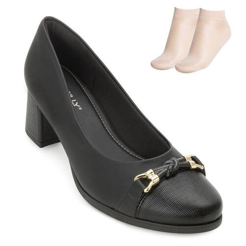 O Sapato Salto Piccadilly é a combinação perfeita de elegância, conforto e praticidade para mulheres que não abrem mão de estar bem vestidas em qualquer ocasião. Confeccionado em material alternativo de alta qualidade e com um charmoso detalhe dourado no cabedal, ele traz um toque de sofisticação ao seu visual. O forro têxtil acolchoado e a palmilha anatômica garantem conforto prolongado, enquanto o solado de borracha antiderrapante proporciona segurança a cada passo. O salto bloco de 5,5 cm oferece a altura ideal para valorizar a postura sem abrir mão da estabilidade. Para completar, o modelo acompanha um par de meias finas, adicionando ainda mais cuidado e exclusividade ao seu look. O Sapato Piccadilly é feito para quem quer brilhar com conforto e estilo!