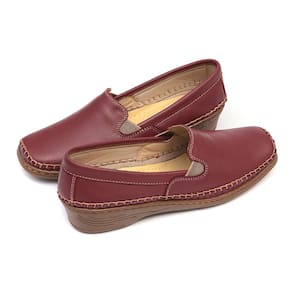 Sapato Sapatilha Mocassim Feminino Couro Vinho Ortopédico Mager - 37 - Vinho