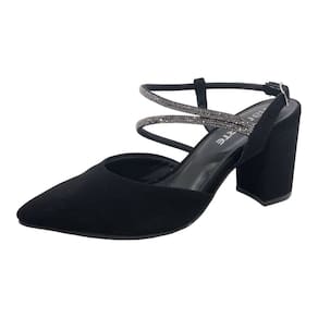 Com um salto alto grosso e um bico fino, esse sapato apresenta uma modelagem que traz a parte do calcanhar aberta, com tiras que se juntam e uma que envolvem o tornozelo, terminando com fechamento prático na lateral do pé.