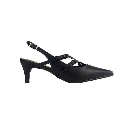 O estilo slingback, que deixa o calcanhar à mostra, garante um visual moderno e sofisticado, ideal para compor looks formais ou casuais refinados.