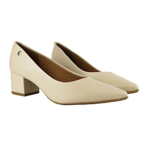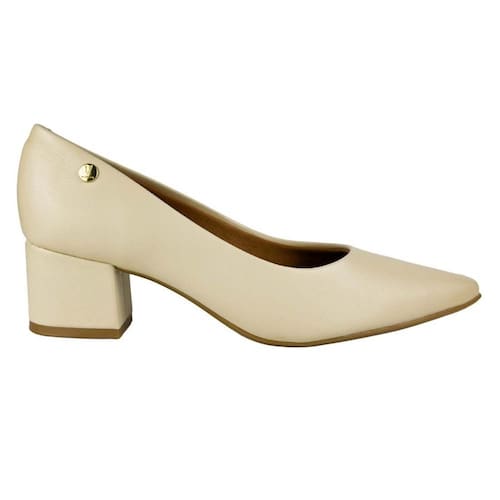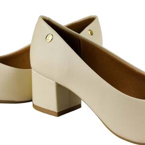 Sapato Scarpin Vizzano Bico Fino Salto Bloco - 38 - Bege Claro