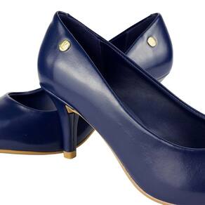 Sapato Scarpin Vizzano Bico Fino Salto Médio Napa - 38 - Azul Marinho