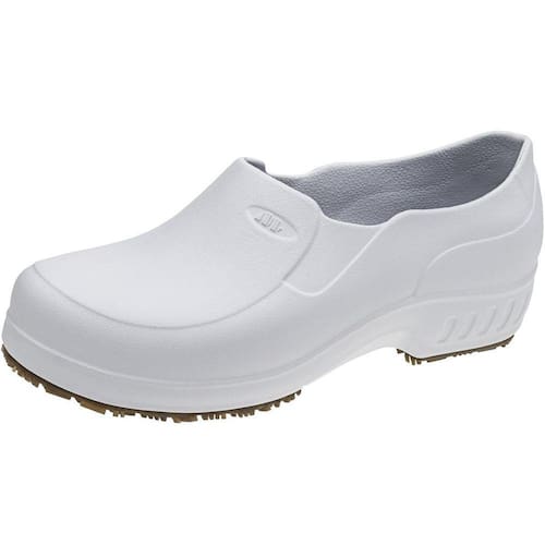Sapato Segurança Eva Antiderrapante Branco 40 Marluvas Marca MARLUVAS C.A: 39213. Fabricado em EVA com solado full grip antiderrapante, possui palmilha higiênica soft comfort, com planta macia de extremo conforto e alta absorção de impacto. Produto leve e flexível, de fácil higienização. Indicado para profissionais da saúde, alimentação ou serviços gerais.