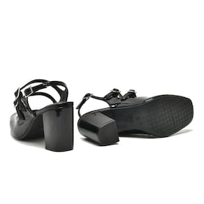 Esse slingback com solado que possui um salto alto grosso e bico quadrado, proporcionando não apenas estilo, mas também conforto ao caminhar.