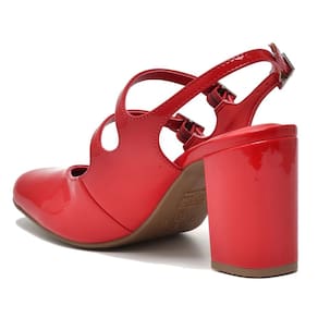 Esse slingback com solado que possui um salto alto grosso e bico quadrado, proporcionando não apenas estilo, mas também conforto ao caminhar.