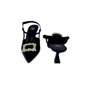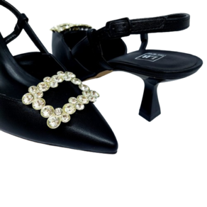 Experimente o charme e a sofisticação do nosso Sapato Slingback Preto de Bico Fino com Fivela. Com uma fivela deslumbrante adornada com pedrarias, este sapato é a escolha ideal para quem busca um toque de elegância em qualquer ocasião, inclusive festas. Seu salto de aproximadamente 7 cm, com uma curvatura cuidadosamente projetada, oferece não apenas estilo, mas também estabilidade e conforto incomparáveis. Fabricado com materiais de alta qualidade, este slingback é perfeito para completar seu look com classe e confiança. Eleve seu estilo e aproveite cada passo com nosso Sapato Slingback Preto Bico Fino com Fivela.