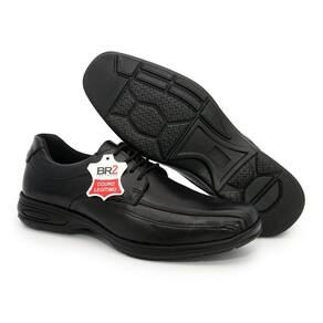 Material Externo: Couro Material Interno: Têxtil Fechamento: Cadarço Bico: Quadrado Solado: Borracha Palmilha: PU Gel Confort Peso: 700 g Marca: BR2 FOOTWEAR Cor: Preto Numeração: 37 a 44.
