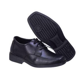 Sapato Social Infantil Menino Bico Quadrado Ajuste Cadarço Calce Facil Pajem Casamento - 22 - Preto