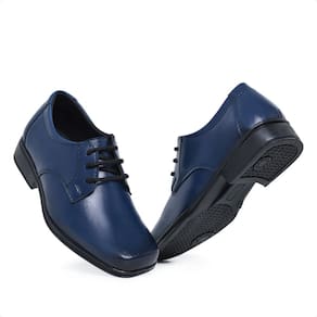 Sapato Social Infantil Menino Bico Quadrado Cadarço Solado Borracha Palmilha EVA Interno Forrado - Azul Marinho - 20