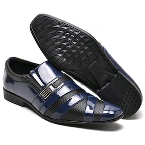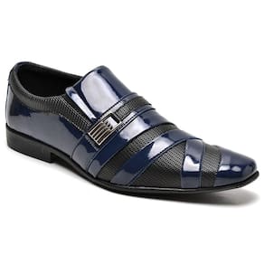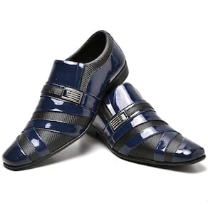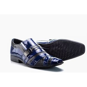 Nossa linha Amsterdã, em couro sintético, nos traz um visual extremamente exclusivo, fazendo uma junção harmoniosa e ousada ao mesmo tempo, de duas cores, tendo o azul verniz junto do preto fosqueado, dando um aspecto de luxuosidade e classe, mas sempre com muito conforto, com forrações especiais para não absorver suor, possibilitando assim um uso prolongado, como festas, eventos sociais, e até mesmo uso diário.