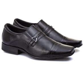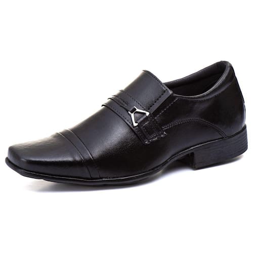 Sapato Social Masculino Bico Quadrado Palmilha EVA Macia Confortavel Solado Borracha Costurado - 41 - Preto