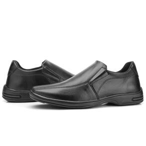 Sapato Social Masculino Confortável com Fechamento Ajustável e Elásticos Laterais - 42 - Preto
