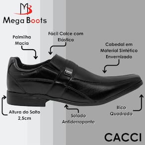 Com fácil calce em elástico, este sapato oferece um ajuste preciso e personalizado, moldando-se perfeitamente aos seus pés. A combinação de estilo e funcionalidade faz deste sapato a escolha ideal para eventos formais, reuniões de negócios e outras ocasiões especiais.
