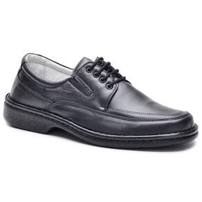 Sapato Social Masculino Couro Confortável Cadarço Blaqueado - 39 - Preto