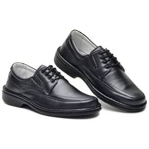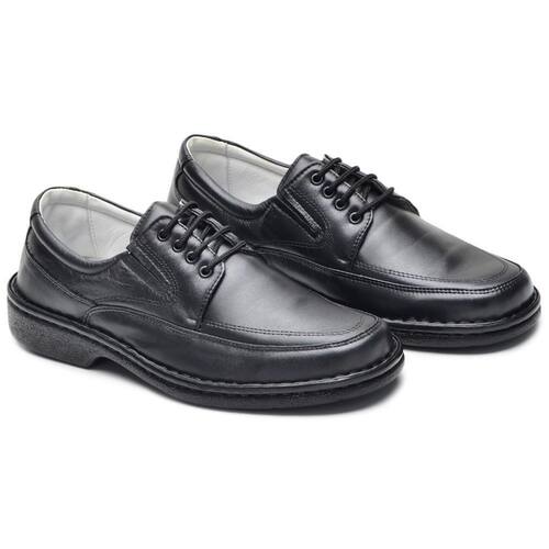 Sapato Social Masculino Couro Confortável Cadarço Blaqueado - 42 - Preto
